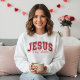 Esta sudadera linda y elegante presenta una gráfica falsa de la secuencia roja que dice 'JESÚS' en letras grandes con las palabras 'es mi San Valentín' debajo de un divertido guión decorativo rojo. Perfecto para mostrar tu fe cristiana de una manera divertida y a la moda en esta temporada de San Valentín.