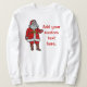 El navidad Papá Noel del dibujo animado en esta camiseta le está esperando para añadir su propio texto. Él puede decir que cualquier cosa que usted tiene gusto - apenas llene adentro "lo personalizan" campo, o lo modifican para requisitos particulares más lejos para ajustar la fuente/el tamaño/el color. El viejo santo alegre Nick está llevando un juego rojo con el borde de piel blanco y las botas marrones. Se abre su boca y él está gesticulando con una mano con guantes. Grande si usted quiere hacer su propio suéter feo del navidad para Navidad.