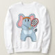 Sudadera Elefante en el tenis con raqueta de tenis