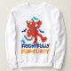 Prepárense para una Halloween totalmente espeluznante con este diseño "Frightfully Fun and Furry" que presenta a Elmo vestido como un lindo gato negro. Completada con orejas puntiagudas, una cola difusa y una copa de intestino, Elmo está listo para unirse a la diversión de Halloween. Rodeado de murciélagos juguetones y una curiosa silueta de gato azul, este diseño capta el espíritu lúdico y alegre de la fiesta, perfecto para niños y aficionados a Plaza Sésamo por igual.