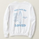Una hoodie que difunde la palabra "eres tan amado" basada en romanos 5:8