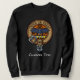 Insignia escudo de Halloween con bate volador rodeado de correa y hebilla sobre fondo tartán. Texto personalizado.
