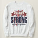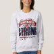 En tiempos de crisis, los norteamericanos siempre se unen para ayudarse mutuamente y mantener a Estados Unidos Fuerte. Esto me inspiró a crear este diseño patriótico en colores rojo, blanco y azul con estrellas y serpentines. Celebra la fuerza, ingenio y resiliencia que hay en cada estadounidense. ¡Muéstrate tu orgullo americano y mantengamos a Estados Unidos Fuerte! Juntos podemos hacer cualquier cosa.