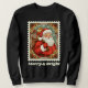 Celebre las vacaciones con estilo con este acogedor suéter con un Papá Noel vintage dentro de un marco retro de sello postal. El audaz diseño "Merry & Bright" añade un toque alegre y nostálgico, perfecto para reuniones de Navidades y trajes de invierno.