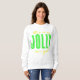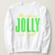 "Esto es tan alegre como yo" frase en amarillo y verde. La palabra "jolly" está en la letra verde y las otras palabras están en letras cursivas amarillas. Para los que están en viveros más sedados.