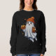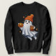 Celebremos Halloween con este adorable ilustracion fantasma, que presenta a un fantasma amistoso usando un acogedor gorra de cuchillos naranjas, sosteniendo una calabaza sonriente y un pequeño libro con cara de calabaza. Rodeado de murciélagos, estrellas y destellos, este bonito diseño de estilo kawaii es perfecto para camisetas, ropa y regalos de Halloween. Creado en un arte vectorial limpio con gradientes suaves y tonos pastel suaves, es profesional, de alta resolución y flexible para cualquier fondo, lo que lo convierte en una encantadora adición para los amantes de Halloween de todas las edades.