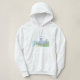 Faro morado dibujado a mano original; capucha de mujer con vida de playa en la parte posterior