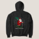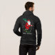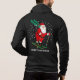 Merry Christmas Skiing Santa Winter Personalized Hoodie cuenta con un ilustracion de Santa Claus esquiando por una colina con tu nombre personalizado en la parte delantera. Al revés está el mismo diseño con el texto "Feliz Navidad". Personalice editando el texto en los cuadros de texto proporcionados. Diseñado por ©Evco Holidays www.zazzle.com/store/evcoholidays