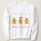 Ilustracion lindo de tres hombres de jengibre vestidos con ropa de fiesta. Sombrero de Papá Noel, pañuelos de invierno y bonitos botones de colores alegran las vacaciones en este diseño. Los hombres de pan de jengibre son esenciales para la temporada de Navidades y este diseño es perfecto para alegrar esta temporada.