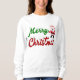 Camiseta con Feliz Navidad en texto verde y rojo 3D y Santa Claus. Camisas suaves disponibles en varios colores.