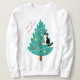 Añada algo de diversión felina a sus celebraciones navideñas con este capricho ilustracion de un gato malicioso escalando un árbol de Navidad decorado. El lúgubre mensaje "¡Feliz Navidad!" completa esta encantadora y divertida escena navideña, perfecta para los amantes de los gatos en todas partes.