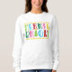 Relájese con esta bonita y colorida camisa de Navidad. Oferta de características: "Merry & Bright" en tipografía con letras a mano moderna y personalizado con recortes estelares. Perfecto "suéter de Navidades feos" para esas divertidas fiestas.