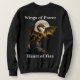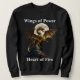 Un violento dragón dorado que cría con la luna llena en el fondo. Las palabras 'Alas del poder, corazón del fuego' están escritas arriba y abajo. Un gran suéter para un hombre o una mujer que disfruta de la fantasía. Contiene contenido generativo.