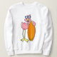 Sudadera Flamingo como surfista con Surfboard.PNG