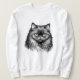 Fluffy Persian Cat Art Men's Sweatshirt." A monochrome portrait of a majestic long-haired Persian cat. This artistic illustration adds a cool, vintage look. Perfect as a gift for cat lovers and men who appreciate unique animal art apparel. Stay cozy in this white men's crewneck sweater!