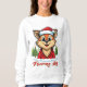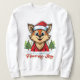 Cuando el zorro dice "Feliz Navidad", un alegre zorro con sombrero de Papá Noel y suéter rojo, rodeado de árboles de Navidad.