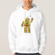 Los robots pueden ser amigables como lo demuestra este diseño. Este diseño es un robot amigable que está parado y ondeando. El robot es dorado y tiene un botón verde en el pecho y ojos verdes. Este simpático diseño de robots se ve muy bien en este cuerpo masculino. Perfecto para usted o como regalo