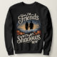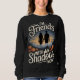 This cozy black-only sweatshirt showcases a soulful illustration of a person strolling beside their shadowy silhouette through a misty pumpkin patch under a twilight sky. Warm, muted tones glow beautifully against the deep black fabric, while soft fog and amber pumpkins add an autumn dreamscape vibe 🎃🌫️
