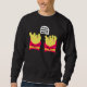 Dos contenedores de patatas fritas personalizados sonríen, y uno de ellos dice, "¡¡Fries antes que chicos!!". El diseño colorido y lúdico añade un mensaje humorístico y luminoso.