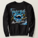 Edgy Frost Bite logo with icy mouth & lightning teeth. Punk-inspired graphic for hoodies and tees. Show no fear.