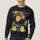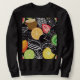 Sudadera Frutas tropicales coloridas, fondo negro.