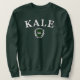 Looks totally legit until you inspect closer... This is a sweatshirt for my vegan friends. 'Kale' university college style logo with a school crest made of leaves of kale and banners that say 'eat your veggies,' and 'vegan.' This is bold but funny, and everyone will have a laugh! Show off your vegetarian pride, and your love for animals with this cool sweatshirt.
