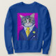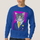 Camiseta en un digno gato caballero, con ojos verdes, vestido de rayas azules, con corbata amarilla y flor de solapa
