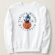 Esta sudadera linda y de moda muestra un gato negro de aspecto retro encima de una vieja calabaza jack-o-lantern con las palabras Vintage Halloween Wishes a su alrededor.