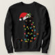Sudadera Gato negro de Santa enredado en luz de árbol de Na