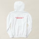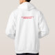 GénesisOneOne con capucha blanca. Texto negro y rojo. "Fe en cada hilo" lema Escritura - Génesis 1:1 "Al principio Dios creó los cielos y la tierra".