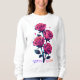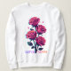 A stylized, glitch-art depiction of four pink roses with dark stems and leaves against a plain white background.