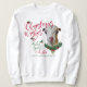Cabra Amantes Navidades Sweatshirt - Añade tu nombre de granja - ¡Usa esta mañana Navidades! Pintura de retrato adorable de un niño de cabra de La Mancha con Navidades verdes, heces y bayas, arco rojo y mistletoe - con caligrafía ornamental que dice: Deseos de Navidades y Besos de Cabra Bebé - Perfecto para el amante de cabra en la familia - A ©goatlady GetYerGoat™ original.