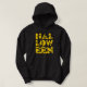 Gracioso gato negro, Gorra de murciélago y bruja en texto, feliz Fiesta de Halloween camiseta encapuchada