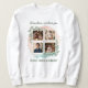 Celebrate Grandma with this beautiful personalized sweatshirt featuring a custom photo collage, a delicate eucalyptus design and soft watercolor accents, framing four family photos. The loving message 'Grandma, we love you' makes it an unforgettable gift for birthdays, holidays, or just because. Customize with your favorite photos and names for a truly unique present.