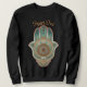 El Hamsa o "Hamish Hand" ha sido un talismán durante miles de años a lo largo de numerosas culturas que se cree brindan protección contra "El ojo del mal", otorgando la Buena Suerte al usuario, e incluso la bendición de la fertilidad. El magnífico diseño del Hamsa en esta camisa es totalmente único en sus tonalidades de gradiente fresco de verduras y cobre. Formar un arco encima de la mano es un campo de texto para personalizar con su nombre o título (o borrar si es preferible).