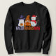 Un fantasma, un gnomo y un muñeco de nieve celebran la temporada navideña con sudadera Hallothanksmas.