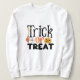 Sudadera de Halloween Trick Or Treat Sudadera de Halloween La familia moderna combina el diseño de la camisa de Halloween con el texto "Trick or Treat Halloween" con letras en naranja y blanco con un pequeño acento fantasma. Orden por cada miembro de su tripulación.