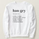 Suéter de la definición de Hangry. Han - gry es un estado de la cólera causado por la falta de comida; tenga hambre causando un cambio negativo en estado emocional.
