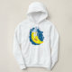 Una cara feliz de luna amarilla con un gorra azul y blanco. Este diseño se ve realmente efectivo en esta casa de mujeres
