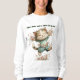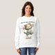 A Cute Women's Sweatshirt With Happy The Cat Dancing With Flowers And A Typography Saying Purrs, bows, and a whole lot of sass.