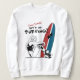 Echa un vistazo a este gráfico de Harley Quinn sentado en una tabla de surf, con el texto: "¡Vamos a surfear"!