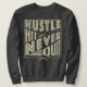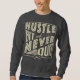 ¡Camisas de hockey sobre hierba en estilos disponibles para hombres, mujeres y niños! El texto dice: Hustle, Hit And Never Quit, con un icono cruzado de bastones de hockey sobre hierba.