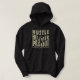 ¡Los hombres, las mujeres y los niños pueden jugar al hockey sobre hierba! El texto dice: Hustle, Hit And Never Quit, con un icono cruzado de bastones de hockey sobre hierba.