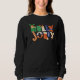 Vibrant holly and candy cane typographic design spelling HOLLY JOLLY in bold textured colors. Ideal for Christmas tees and gifts, evoking playful nostalgia and festive warmth.