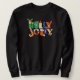 Vibrant holly and candy cane typographic design spelling HOLLY JOLLY in bold textured colors. Ideal for Christmas tees and gifts, evoking playful nostalgia and festive warmth.