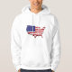 La hoodie de pullover básica de los hombres se muestra en blanco con una huella gráfica patriótica de los Estados de la Bandera de los Estados Unidos, perfecta para el 4 de julio o cualquier otro momento patriótico, esta hoodie está hecha de materiales de calidad y artesanía y está disponible en más colores. Personalizar a tu tamaño, colores, agrega texto a tu gusto; o compra como está. Imagen de stock
