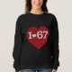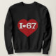 Bold red heart graphic with I Heart 67. Crisp white typography, clean contrast, and nostalgic numerals. Ideal for valentines, couple gifts, and casual wear on tees and hoodies.
