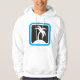 Icono de palmera con fondo negro y marco azul. Este diseño se ve realmente efectivo en este Mens Hoodie