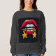 Ilustracion vivo con brillantes labios rojos adornados con estrellas amarillas en un fondo azul, que evoca un sentido de estética moderna, artística y audaz.