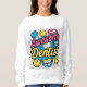 El color es muy bonito al natural, como la foto. El tejido es suave y de buena calidad. Sin defectos en el tintado, ni hilos sueltos o descosidos. Bien la impresión. Los bordes de las letras y el dibujo son nítidos, y el color contrasta muy bien con el de la camiseta.